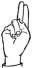 На ћирилици написано БУДИМИР ЂОРЂЕВИЋ састоји се из 15 слова [?]. Исписано ћириличном једноручном азбуком за глувонеме: